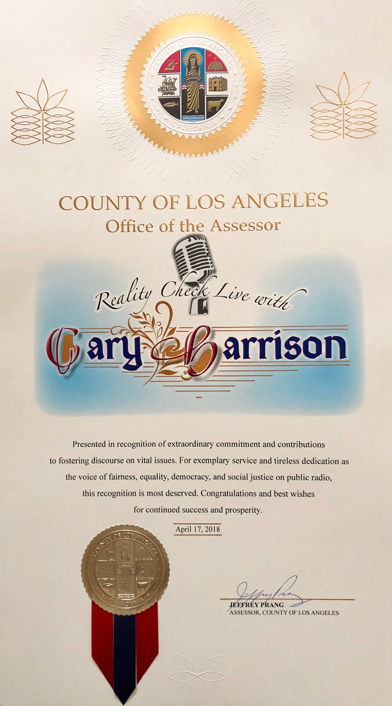 Awards – Cary Harrison: Millions have enjoyed Harrison’s free-range perspective, commentary and satire, earning him Vanderbilt University’s distinguished Siegenthaler Award for integrity, intelligence and courage in the field of journalism, the Sigma Delta Chi award—the highest honor bestowed for public service by the Society of Professional Journalists, and top honors—two years’ running—from American Women in Radio & Television for exposé reporting and investigative journalism. Cary received 1st place honors for “Best Commentary” from the Associated Press, and was honored by the UN, the Mayor and City Council of West Hollywood/Los Angeles for his Environmental and Peace work and was awarded an Edward R. Murrow Award in Public Radio by the LA Press Club.